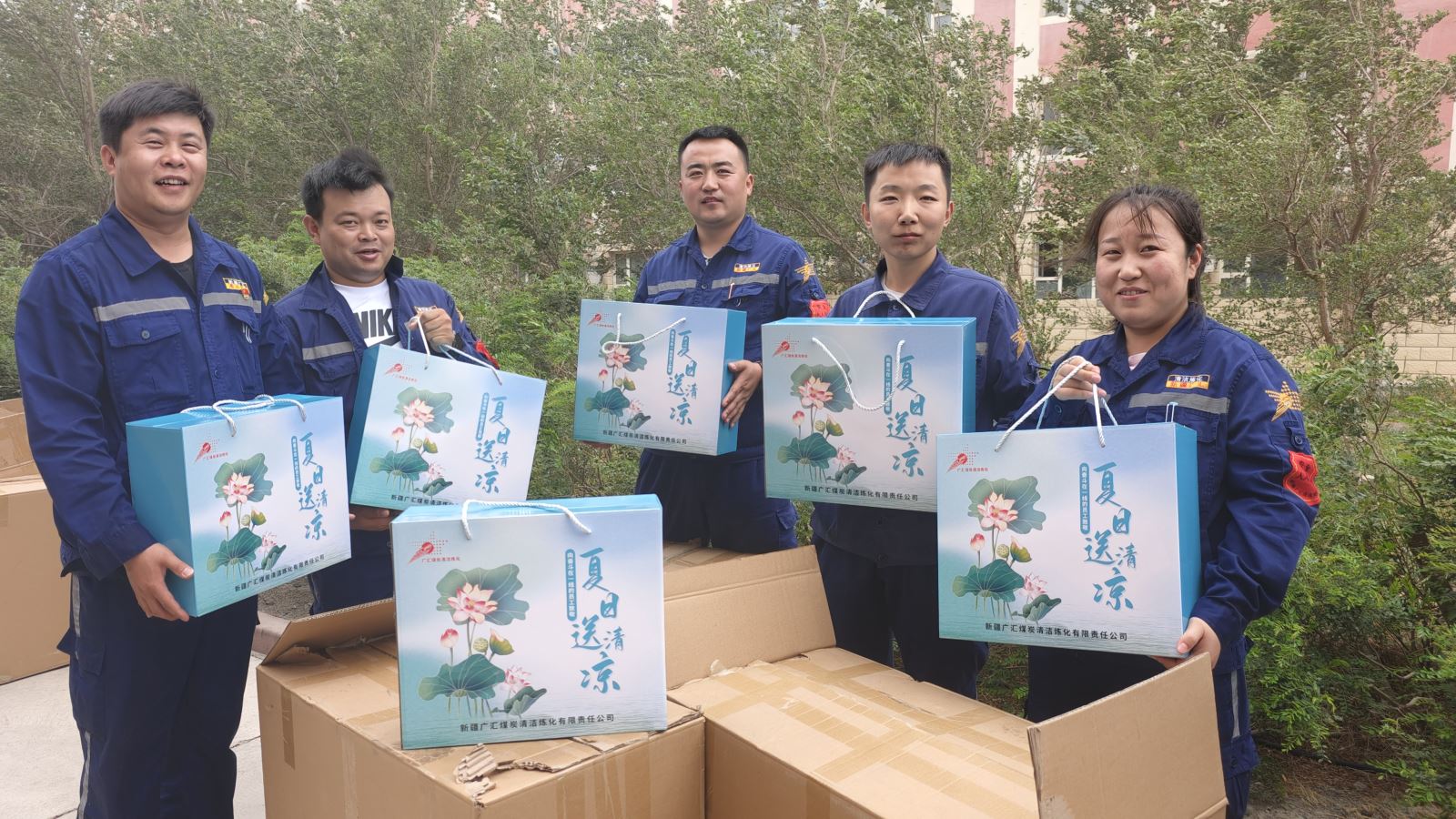 近日,淖毛湖持續高溫,清潔煉化公司年度大修籌備工作正緊張推進。6月11日,公司心系一線員工,及時將1148份防暑降溫“清涼包”發放至員工手中,以實際行動為戰高溫、保生產的一線人員送去絲絲清涼與濃濃關懷。