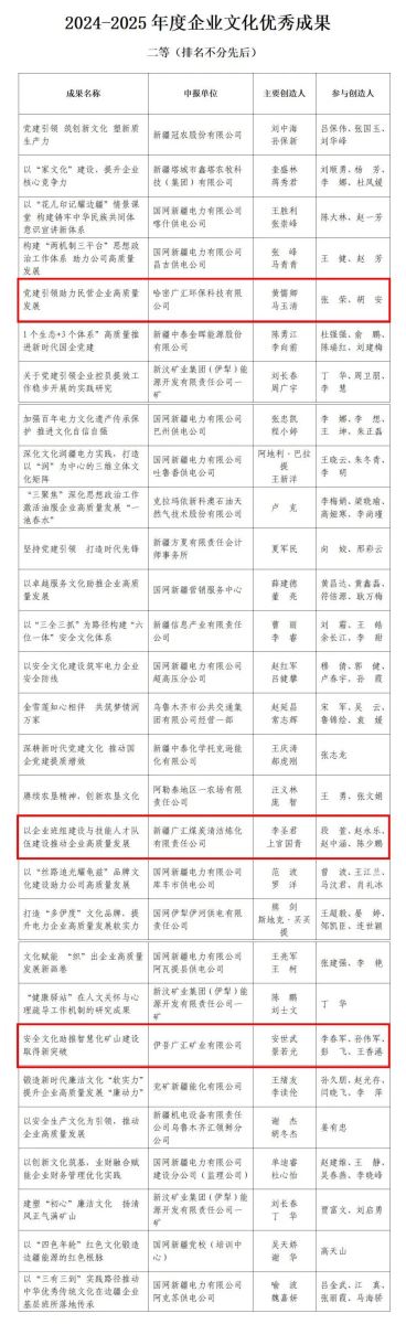 “2024—2025年度企業文化優秀成果二等獎”名單。